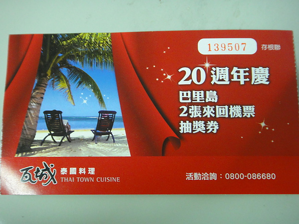 還有還有2010/10/23前到瓦城消費滿1000元就可以參加台北---巴里島來回機票2張的抽獎耶!