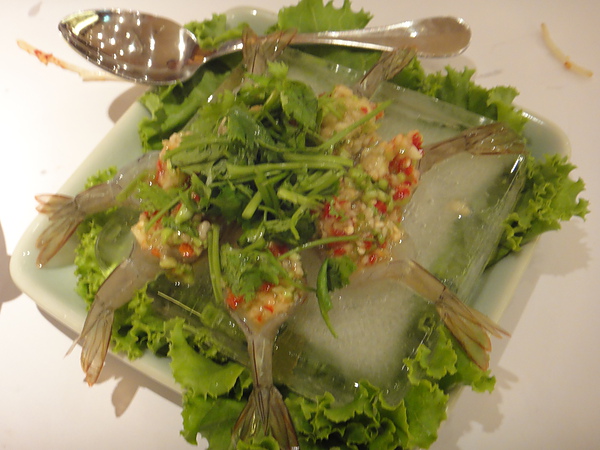 新鮮的蝦子躺在冰塊上配上蒜末辣椒,一入口冰涼嗆辣...好吃...好吃...好吃...