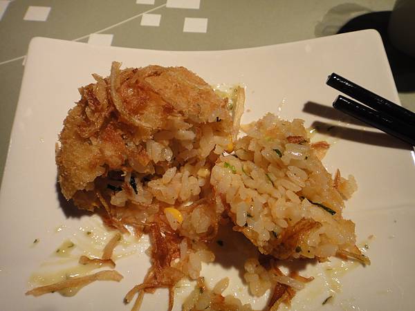 咬了一口後鮭魚香味還帶有一點鍋巴香